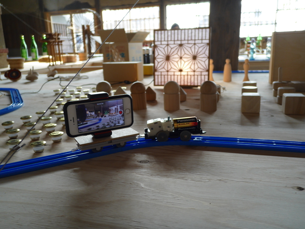 スマホをプラレールに設置して走らせて動画を撮影することも出来ます。自分の目線とは違った高さから見る世界も面白いです。