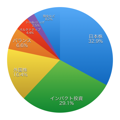 ソーシャルレンディングの比率を少し下げました。もともと比率は多くはありませんでしたが、今後はインパクト投資の一環として意味のある案件に絞って投資することにしたいと思います。